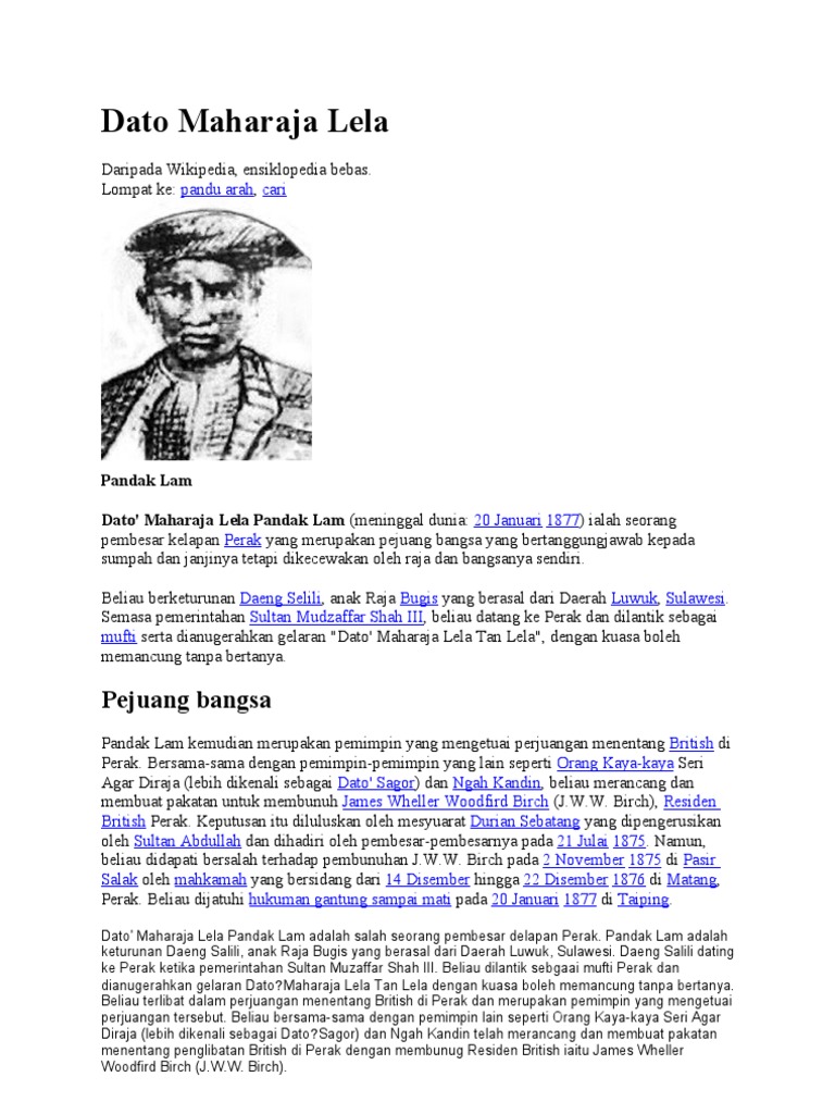 Dato Maharaja Lela 2013. About James W W Birch British Colonial Administrator 1826 1875 Biography Facts Career Wiki Life. Beliau dikenali Pandak Indut dalam sejarah Pasir Salak.